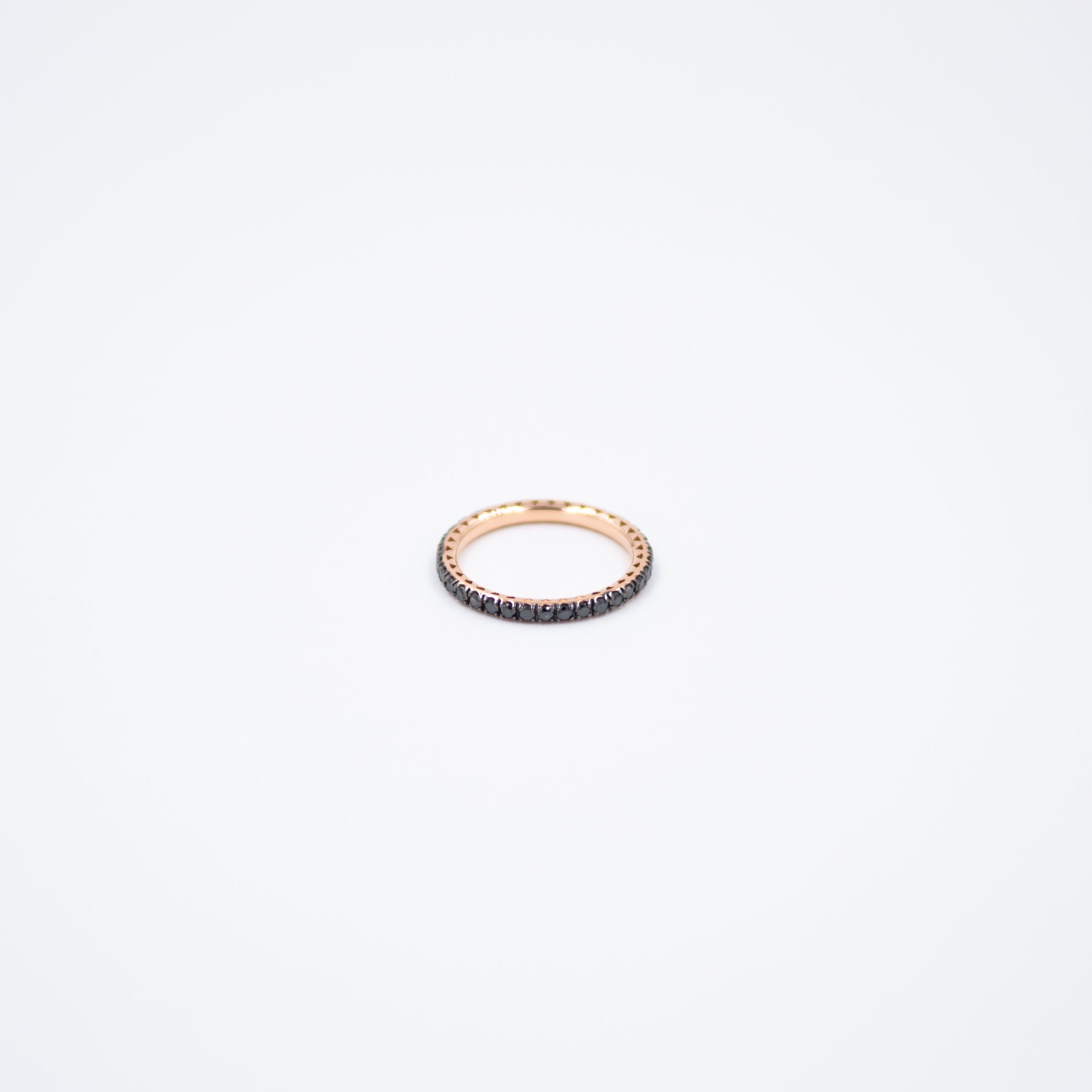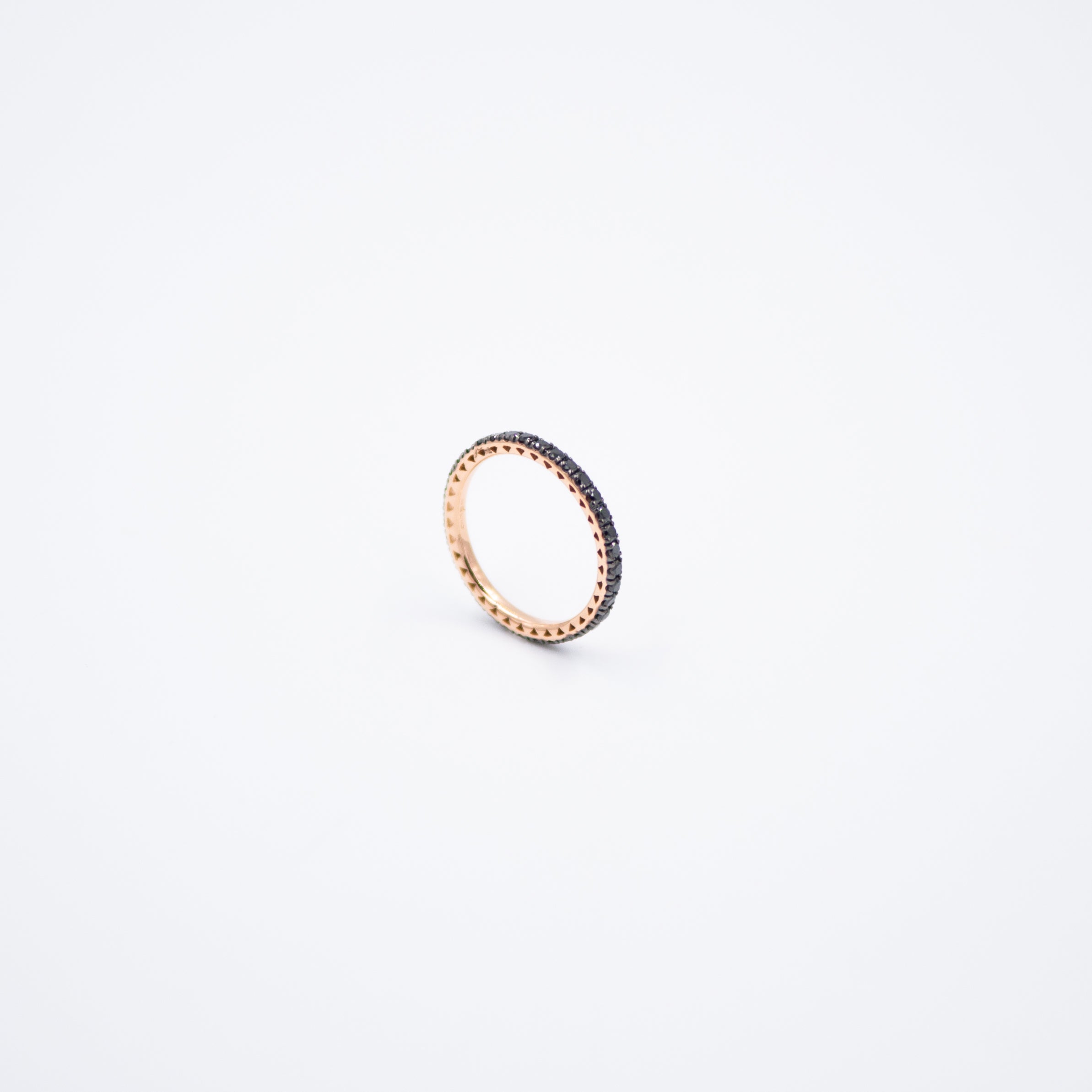 This classic ring encircles the finger with a sparkling row of black diamonds, and perfectly matches any outfit.