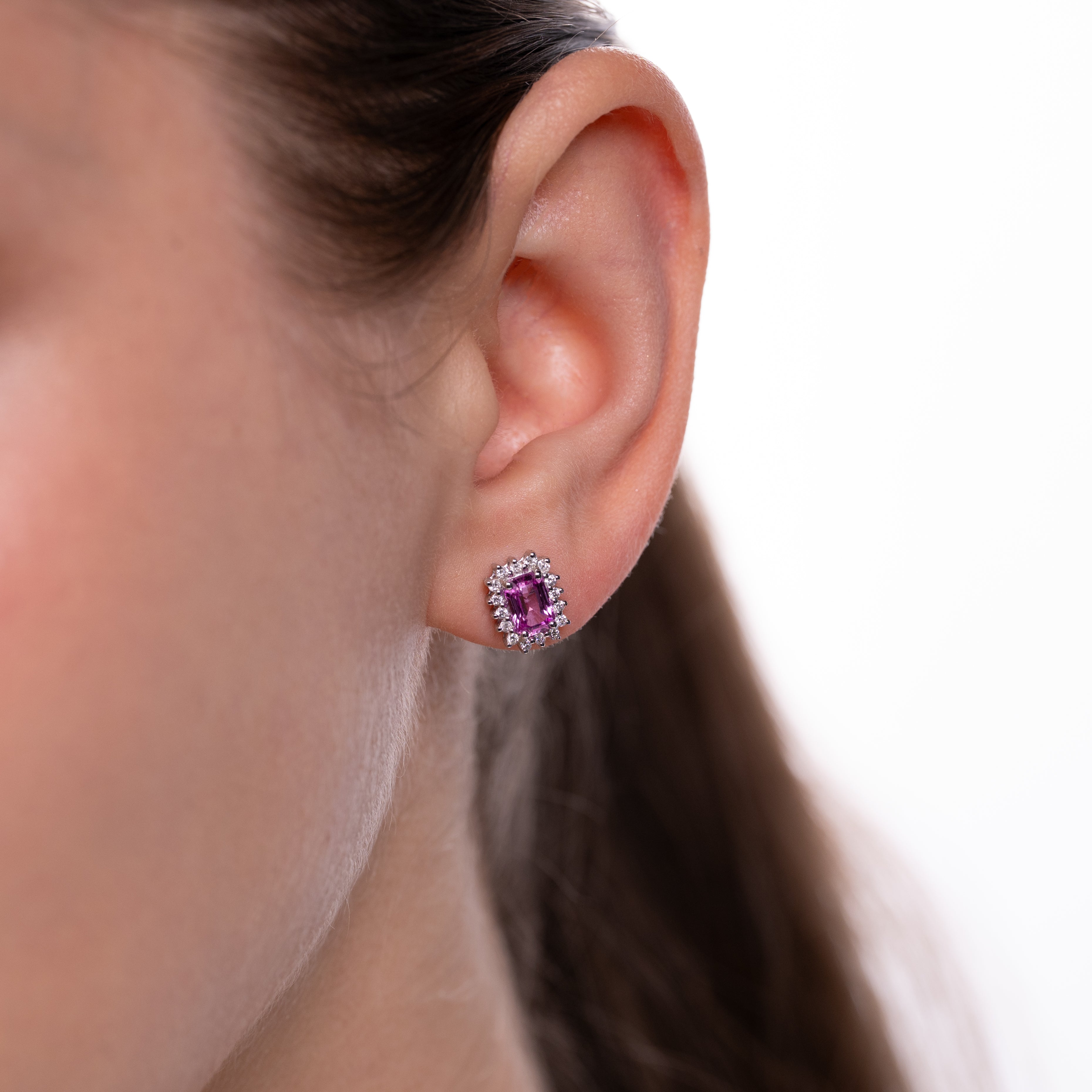 Cercei aur 18k cu safire roz 1.30 ct si diamante