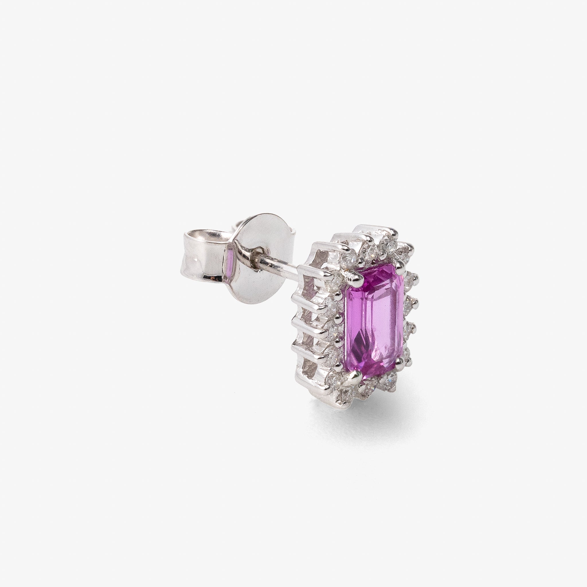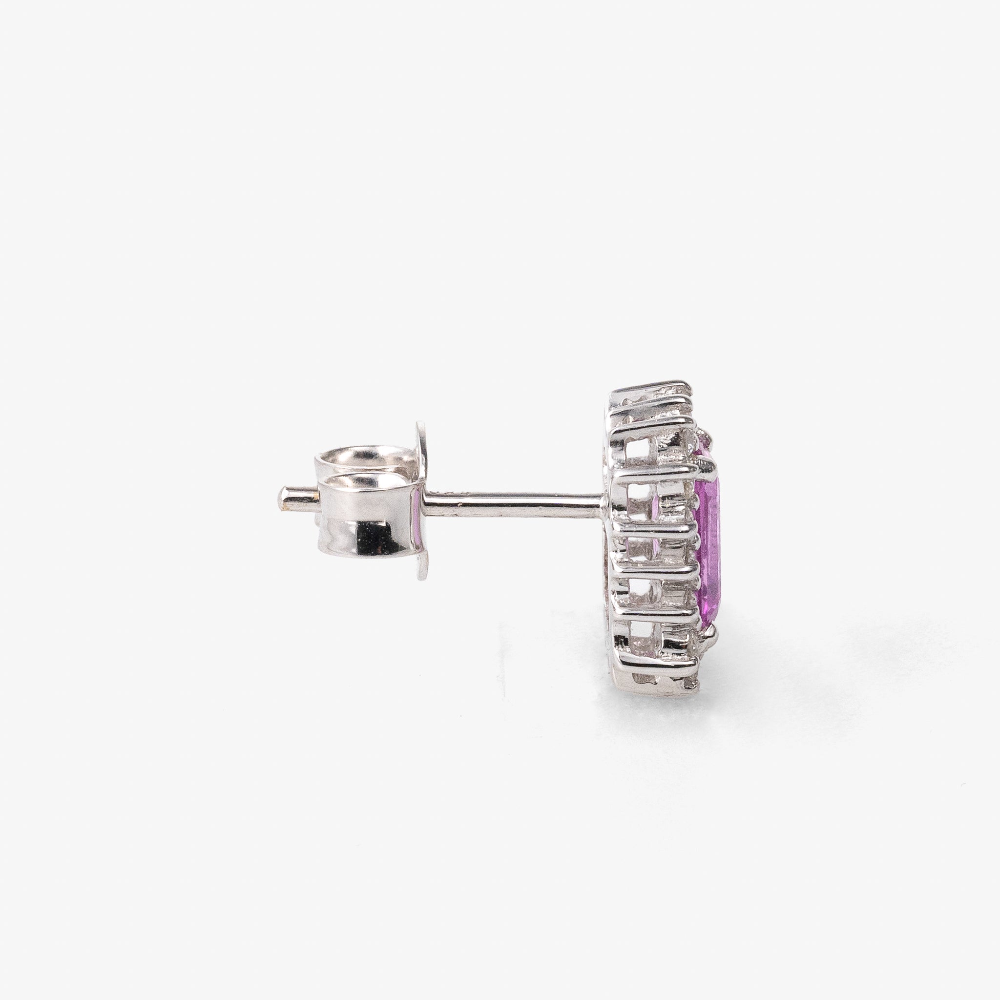 Realizati in aur alb de 18k 2.36 gr, cu diamante 0.25 ct G, VS si safire roz 1.30 ct