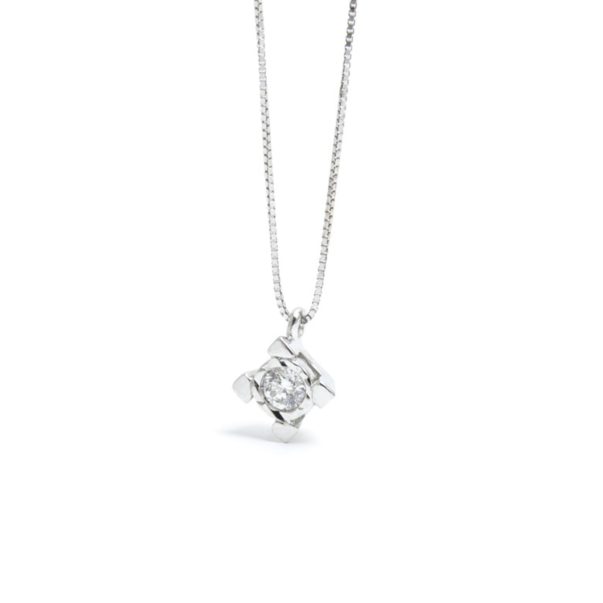 Realizat in aur alb de 18k cu diamant central - carataj cuprins intre 0.03 ct -0.30 ct culoare G, claritate SI.