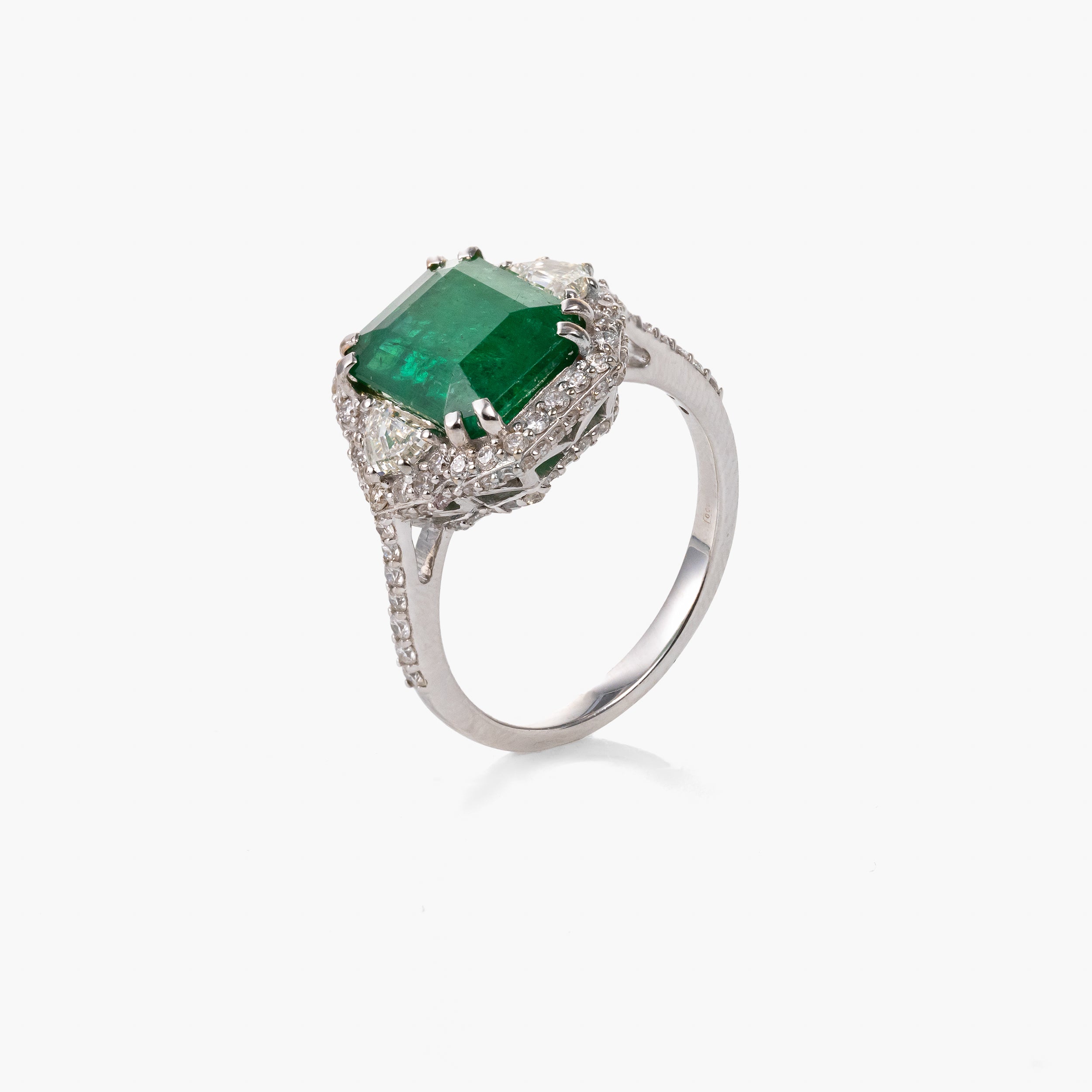 Inel aur 18k cu smarald 4.38 ct si diamante 1.17 ct