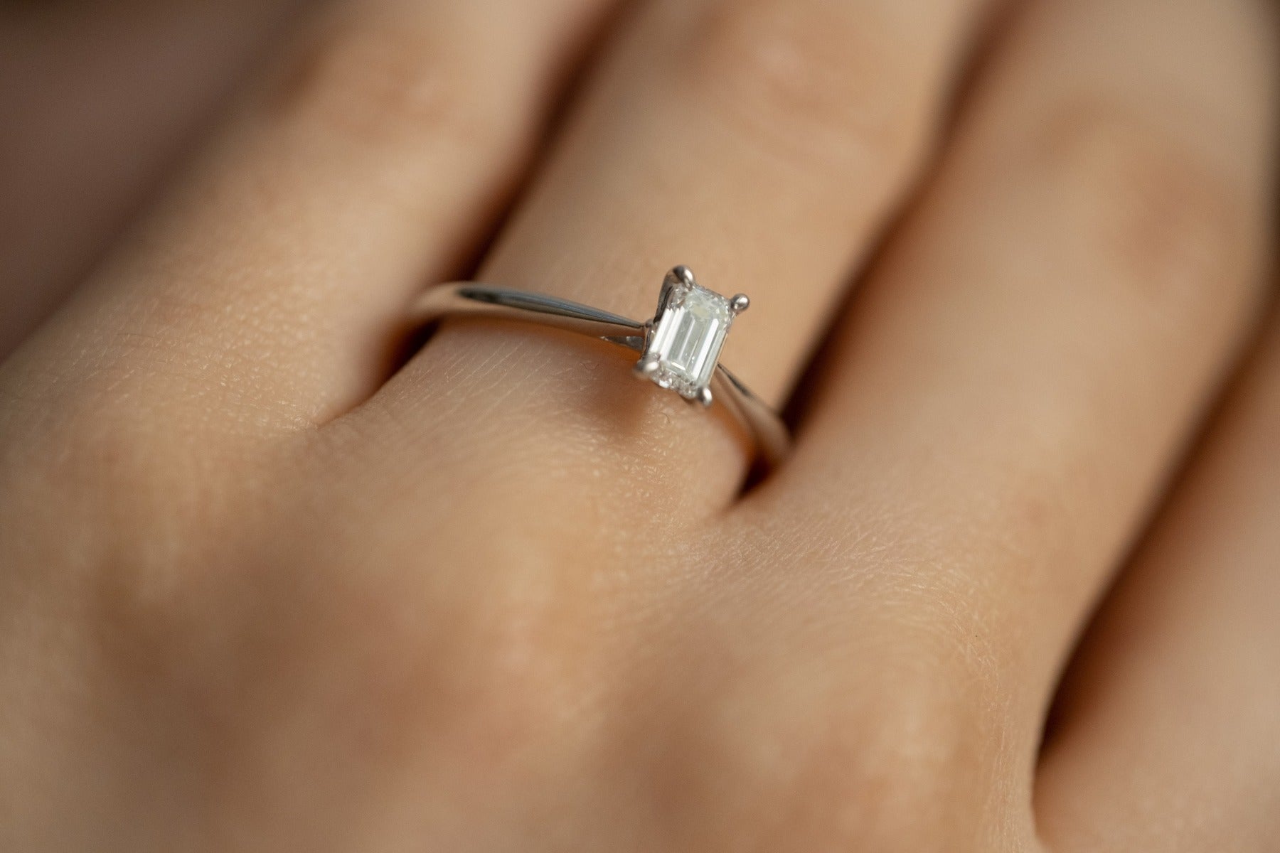 Inel de logodna Selene din platina cu diamant emerald cut 0.42 ct, GIA