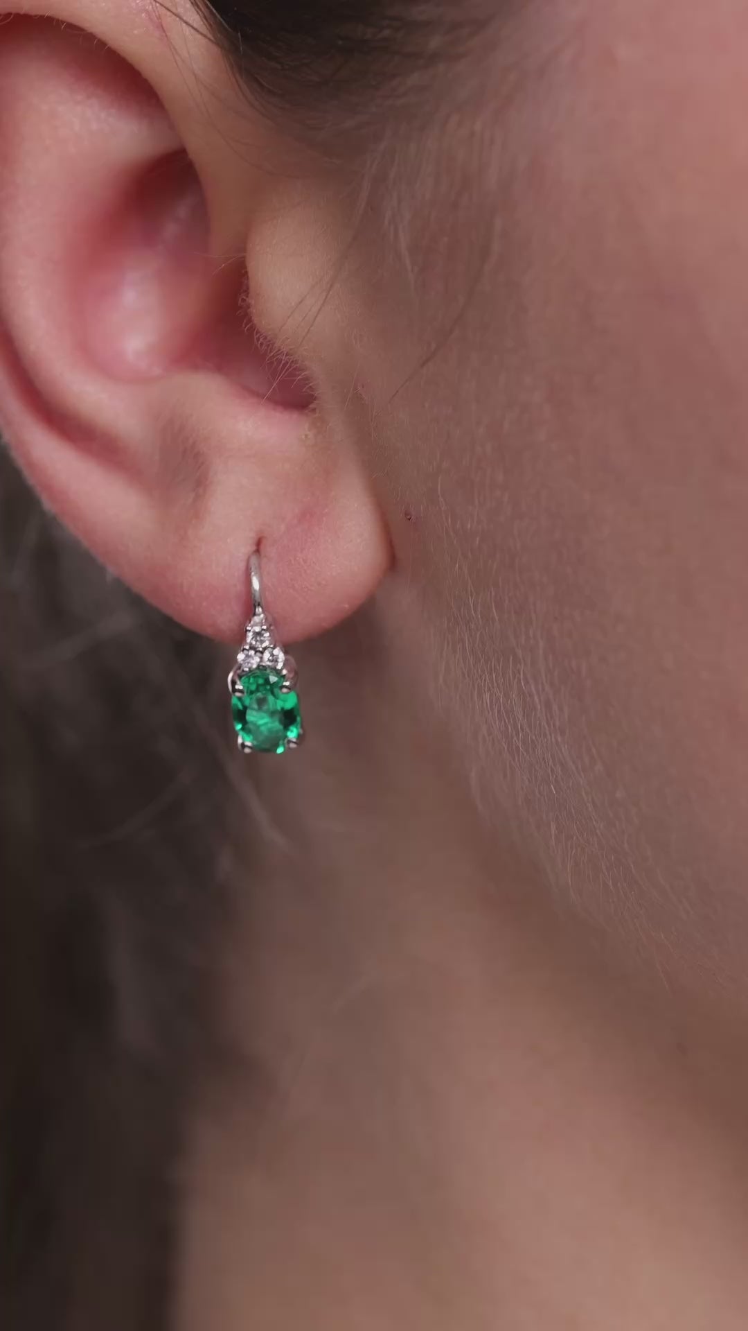 Cercei aur alb cu smaralde 0.70 ct si diamante 0.04 ct
