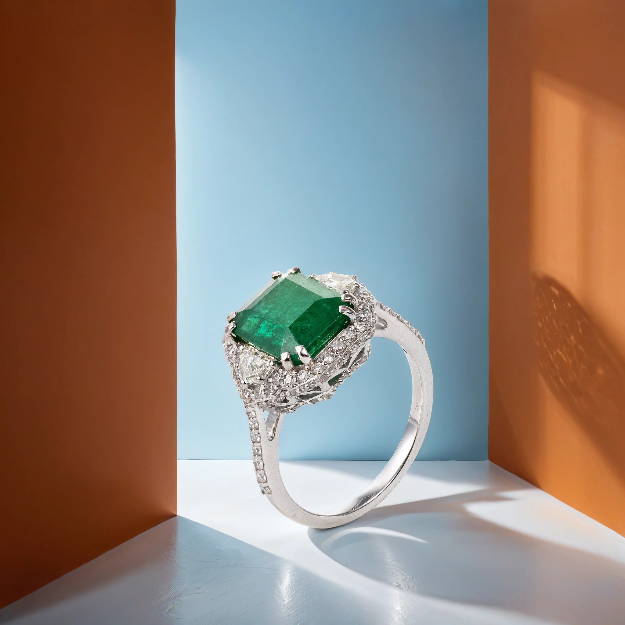 Inel aur 18k cu smarald 0.71 ct si diamante 0.23 ct
