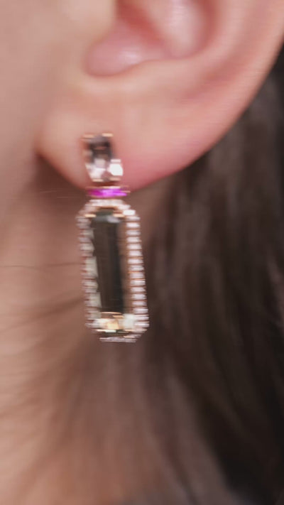 Cercei aur 18k cu quartz menta, safire roz si morganite