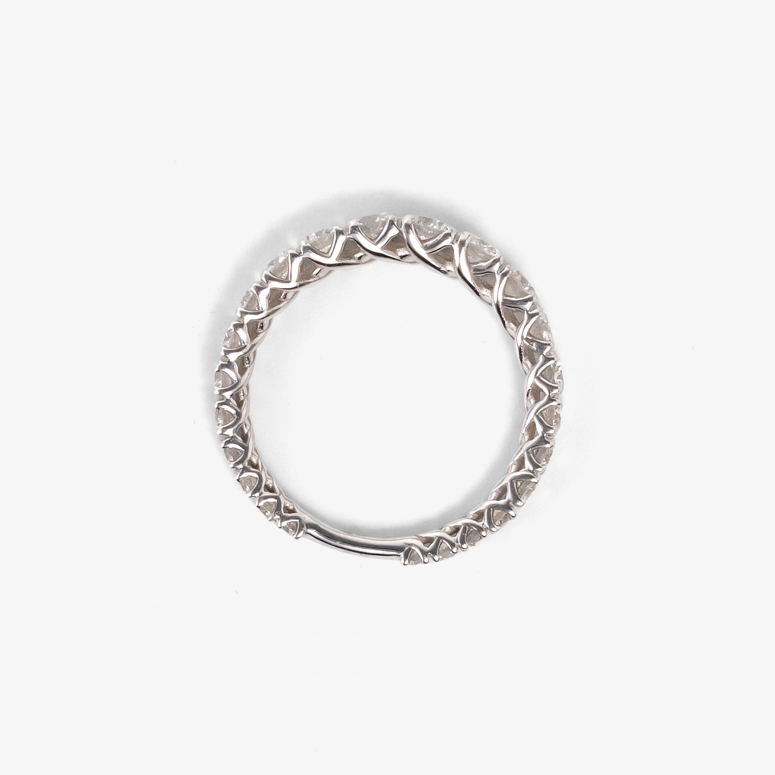 Acest inel clasic inconjoara degetul cu un rand stralucitor de diamante albe si se completeaza perfect cu orice tinuta.
